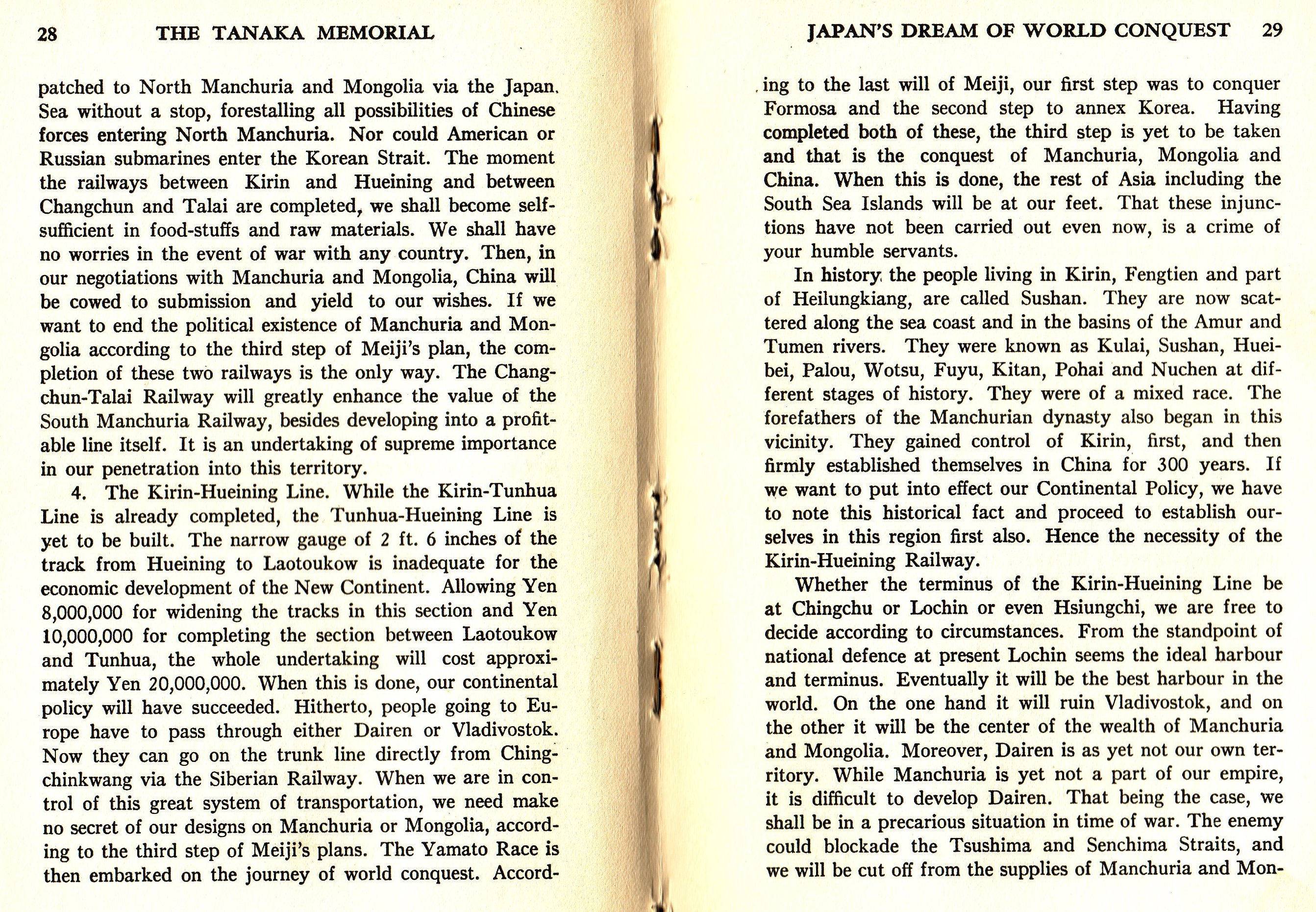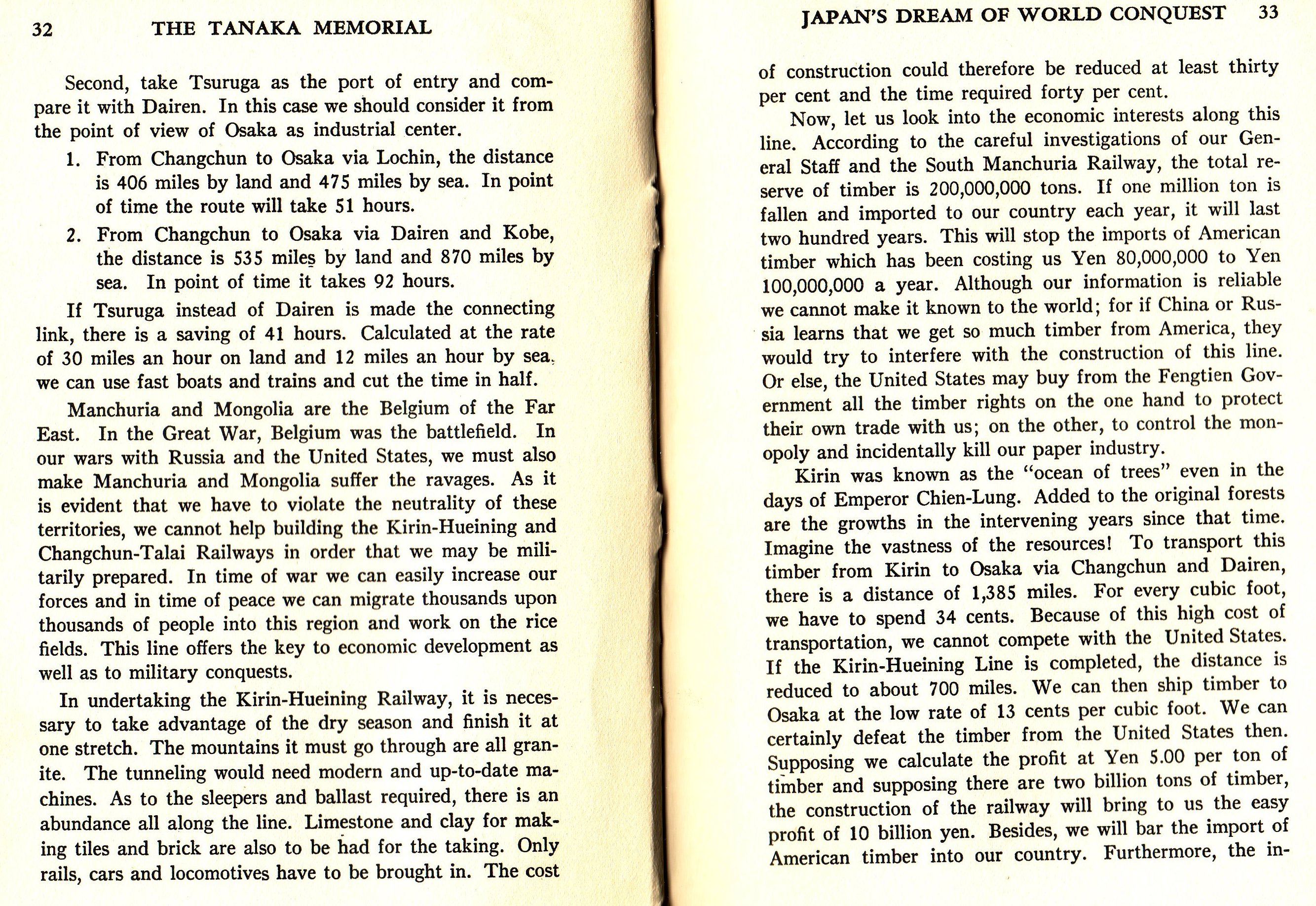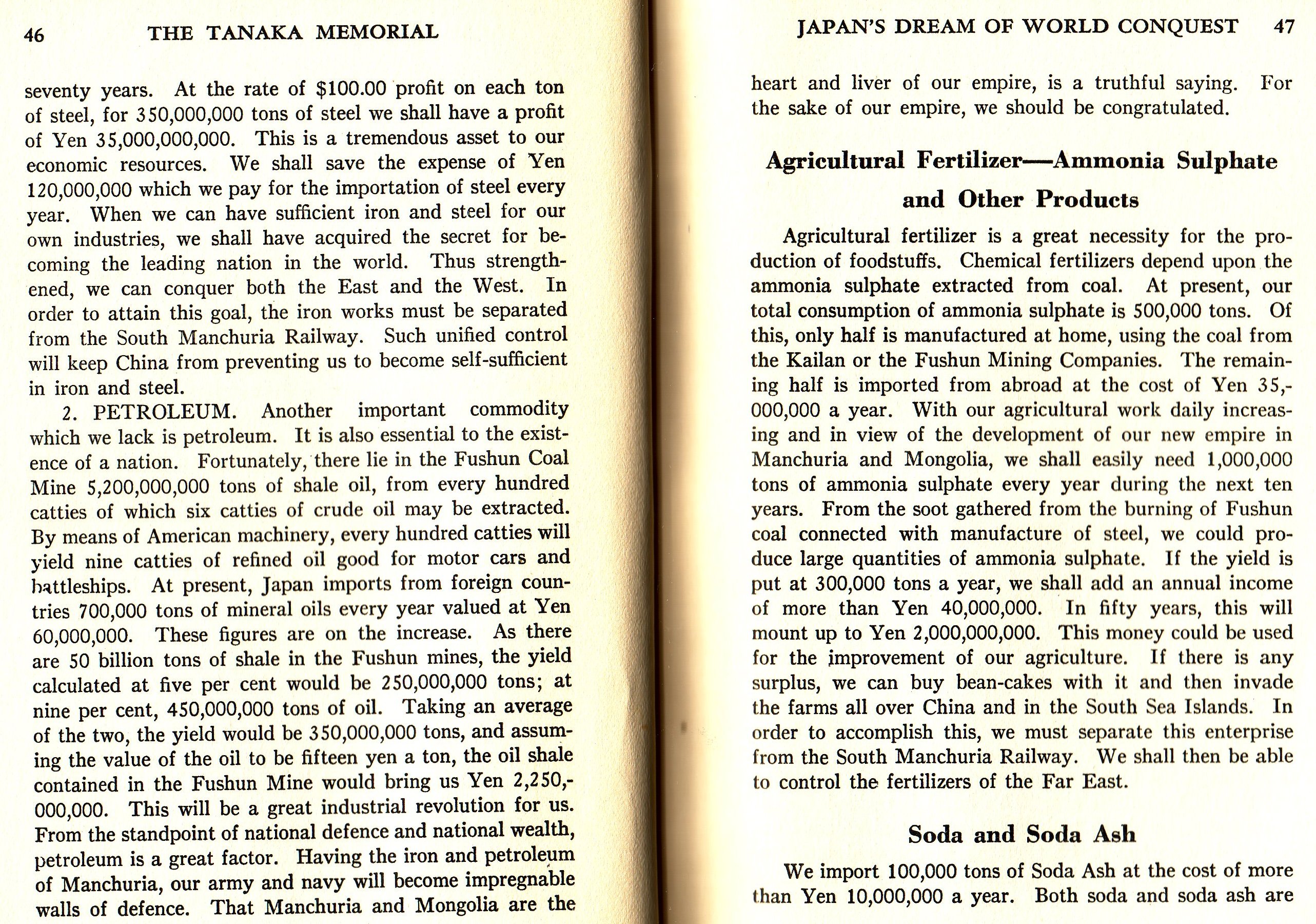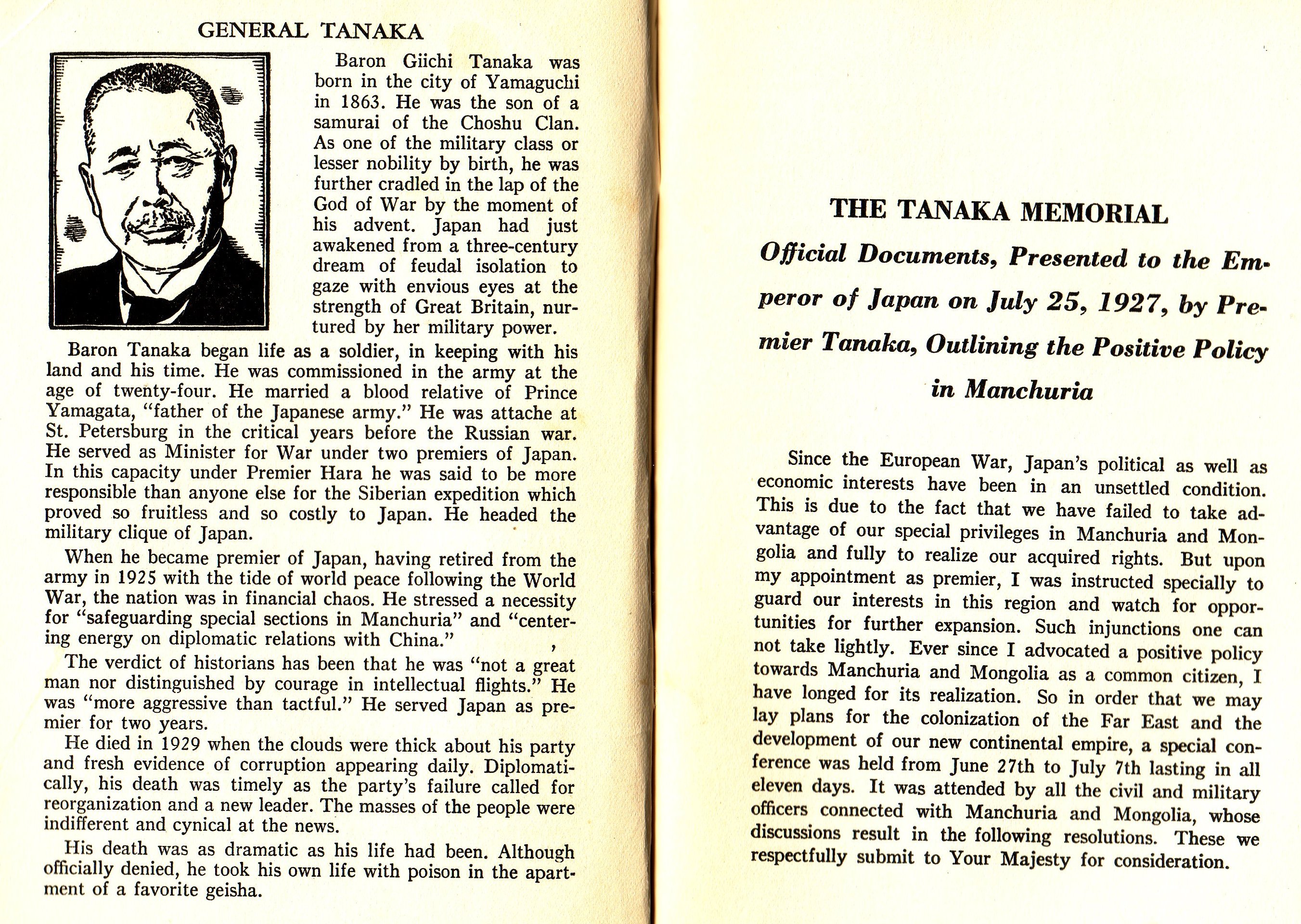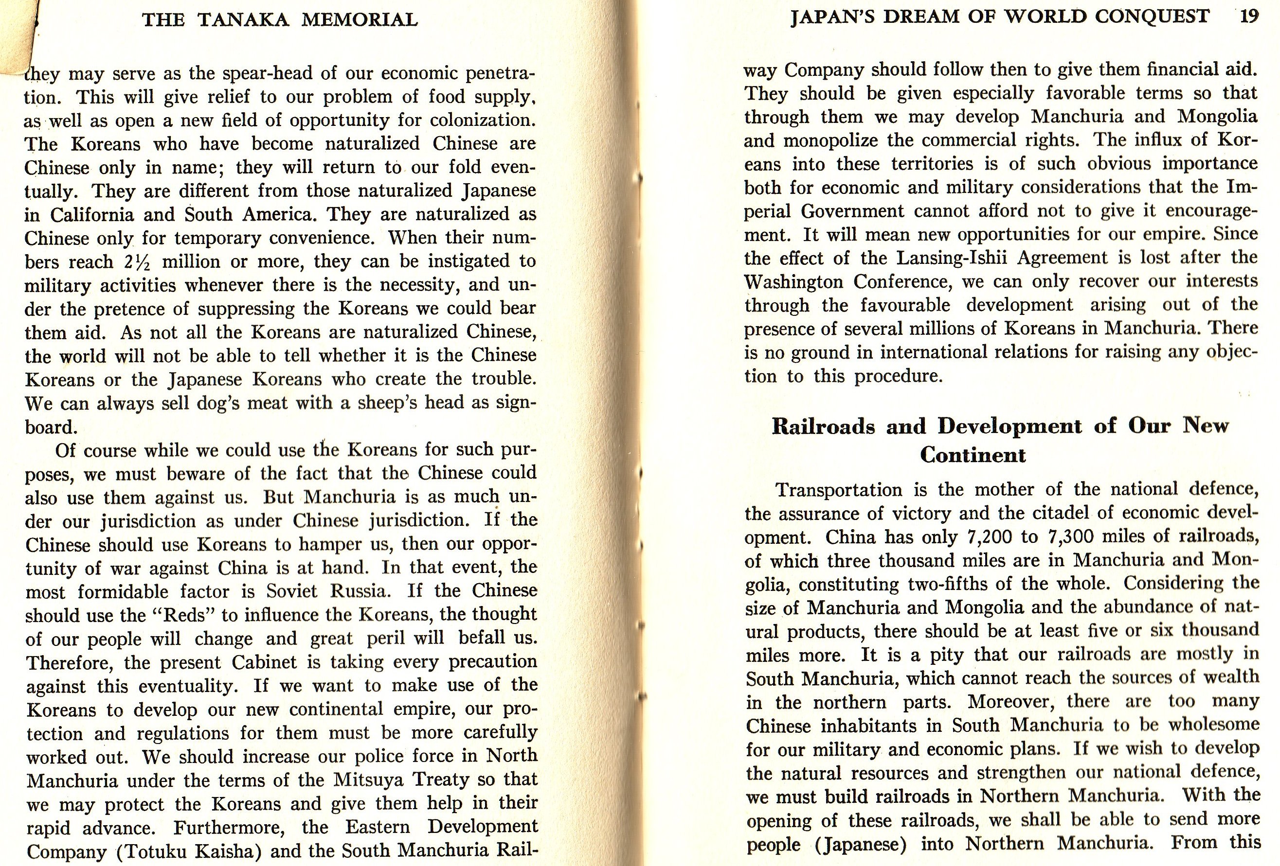This is a document from 1931 that basically details Japan's future plan for aggression in the Far East. The movie Battle of China refers to the document, although in the movie it sort of implies the document also included plans for the invasion of the US and the document really doesn't have anything like that. Anyhow, following is the entire document.