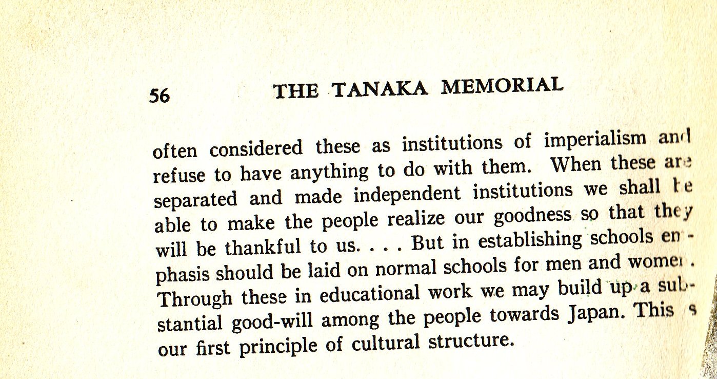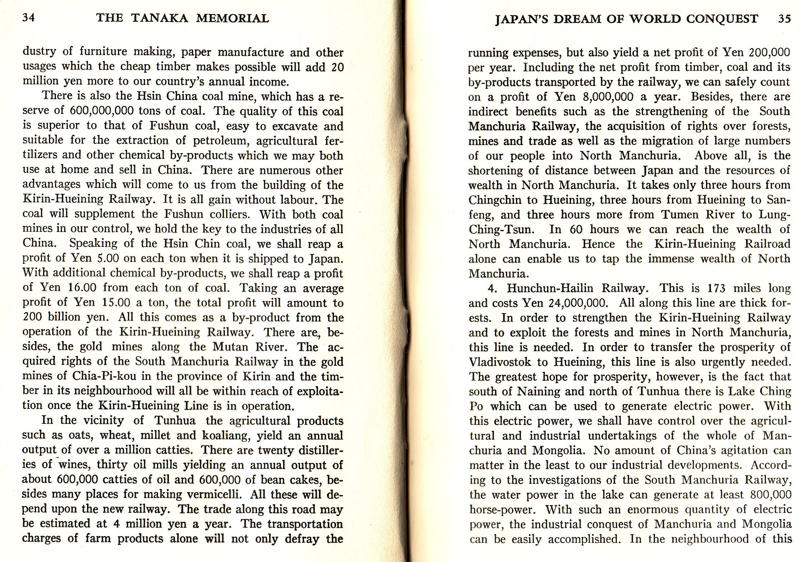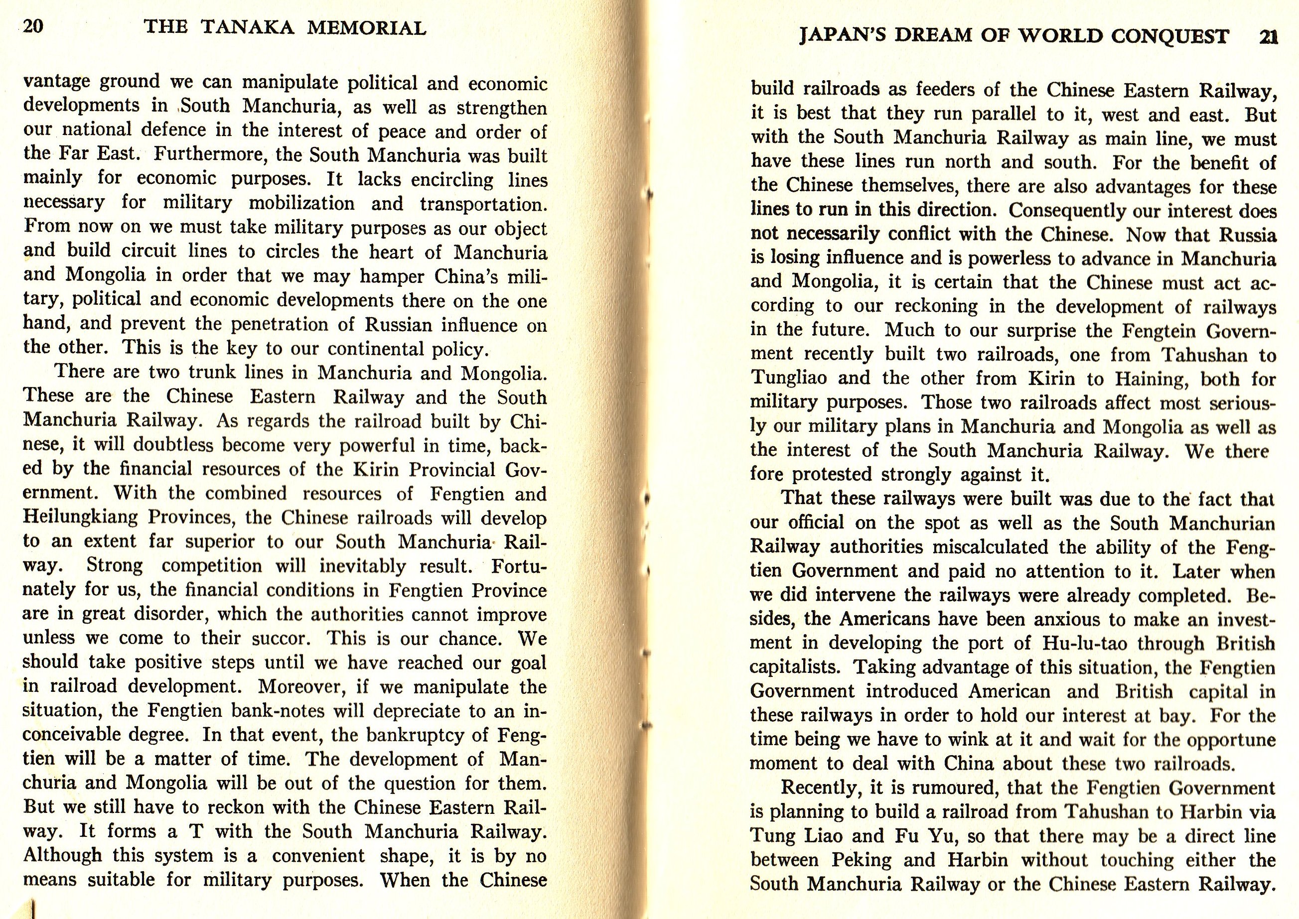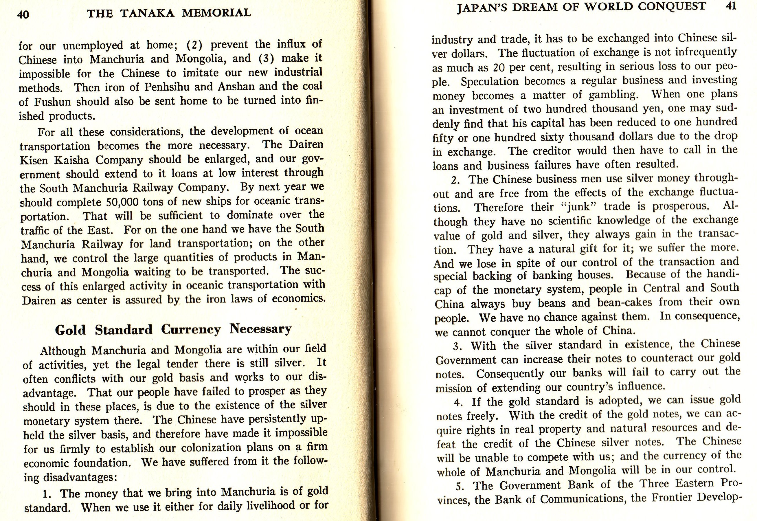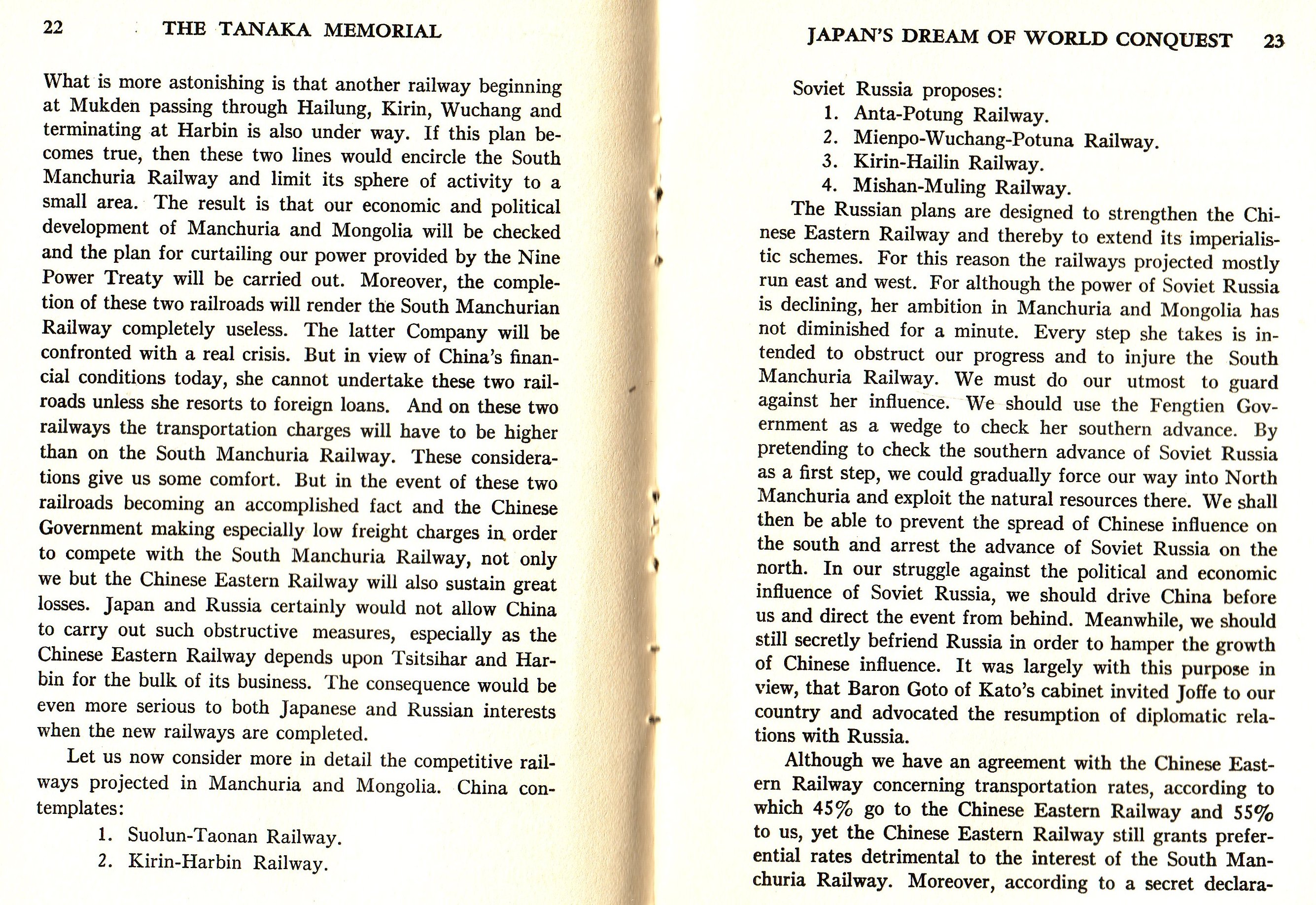 This is a document from 1931 that basically details Japan's future plan for aggression in the Far East. The movie Battle of China refers to the document, although in the movie it sort of implies the document also included plans for the invasion of the US and the document really doesn't have anything like that. Anyhow, following is the entire document.