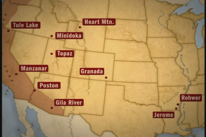 The ten sites for the inland camps. The people of Japanese ancestry (PJAs) would go to these camps and then, in theory, would finds jobs and move to places other than on the West Coast, thus distributing the Japanese American population throughout the entire country instead of being concentrated on the West Coast.