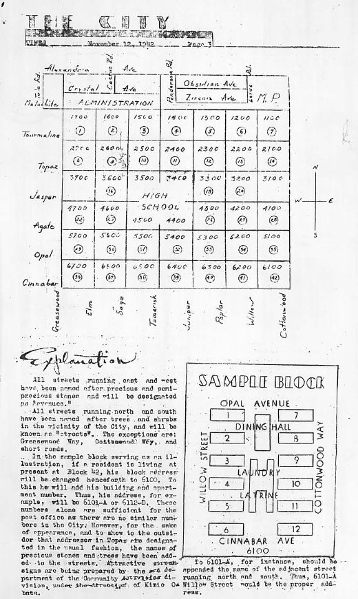 Page 1: Commission adopts new street names; Bed Time column; weather bureau established; ration cards retained.