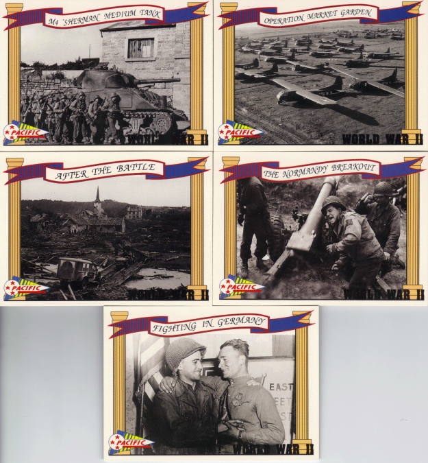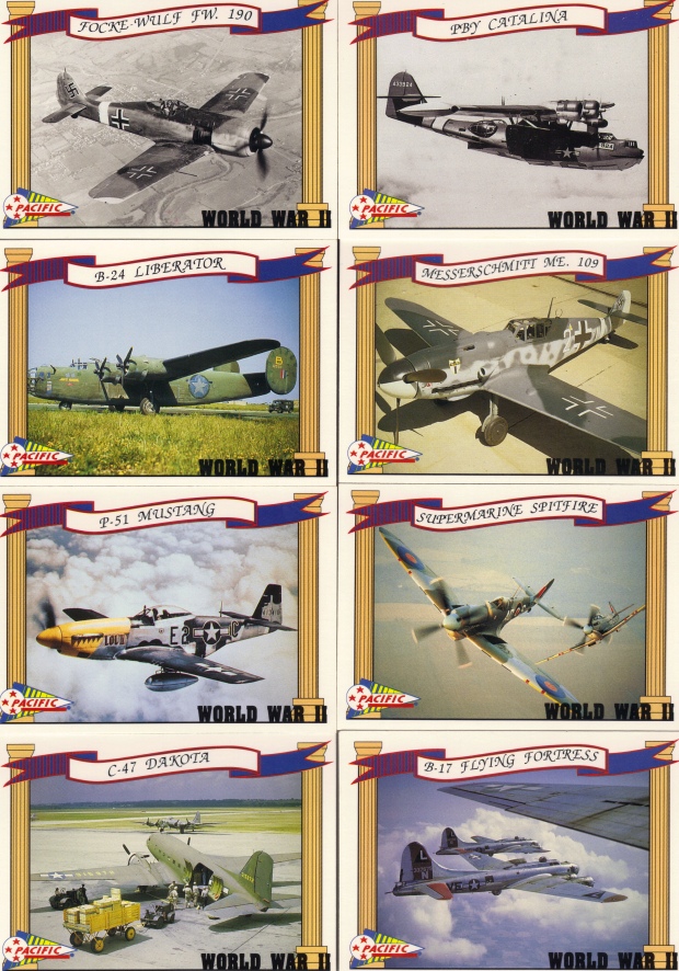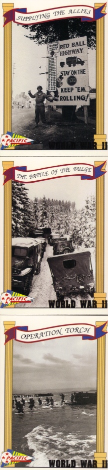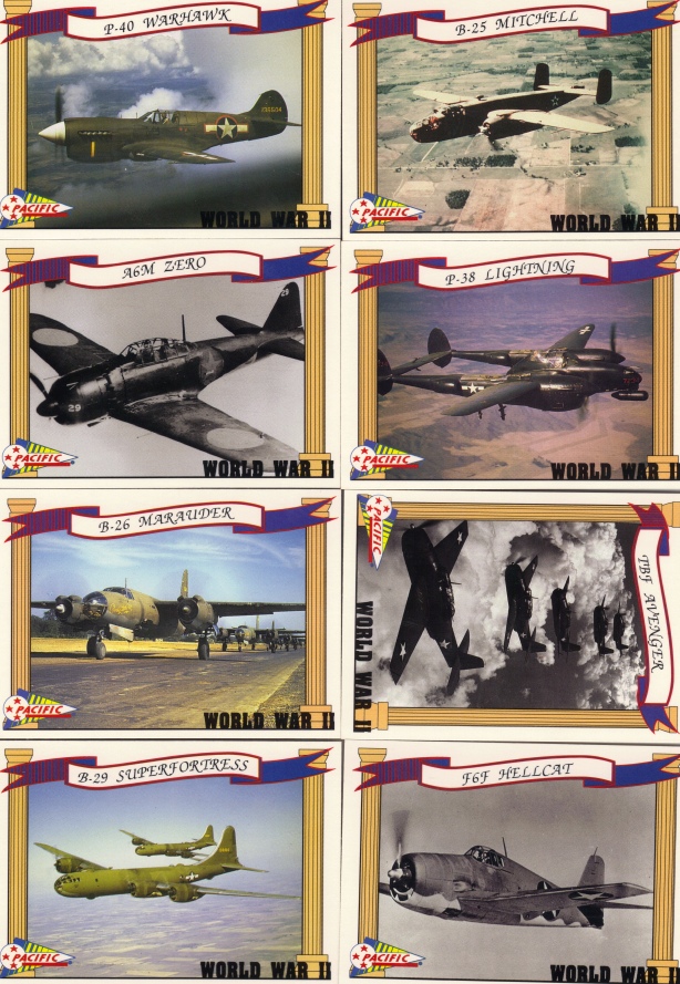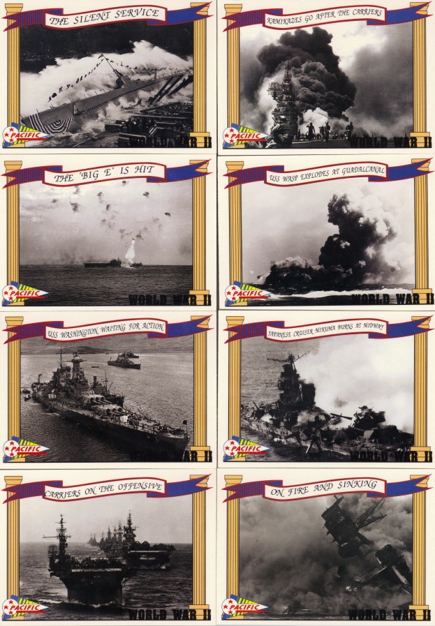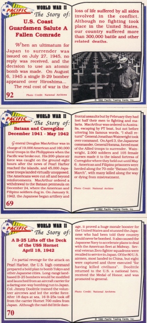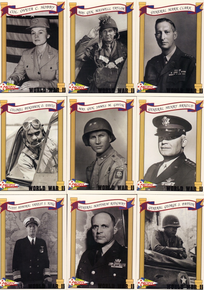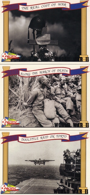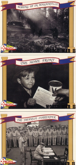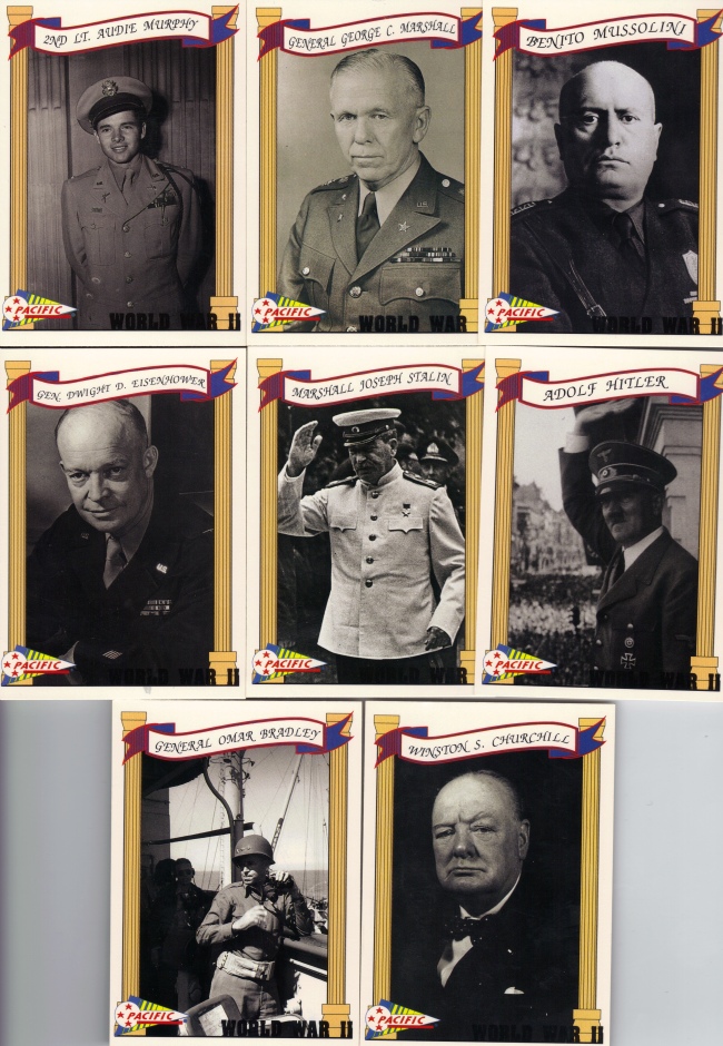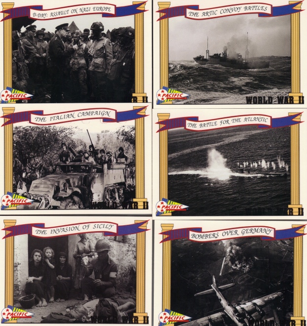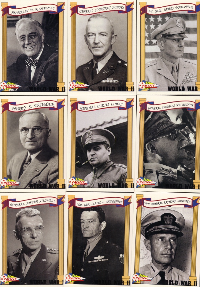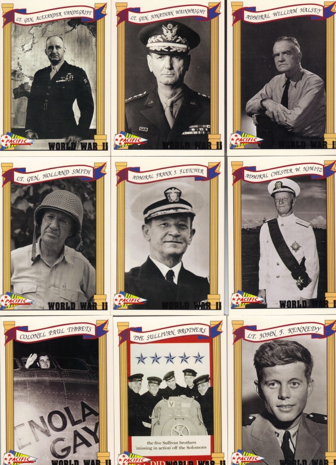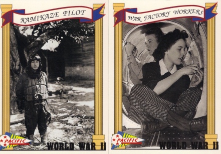 This is a set of 110 cards depicting people, events, things and posters from the second world war. The back of each card has information about what's shown on the front of the card, making this a very good set of cards. Some of them deal with the European theater, but many are about the Pacific theater.