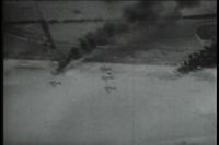 Another Japanese ship is attacked. A few Japanese planes had gotten off the ground and tried to attack the US ships nearby,but they were shot down. The US planes attacking the various islands making up Truk were almost unopposed.