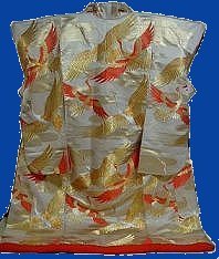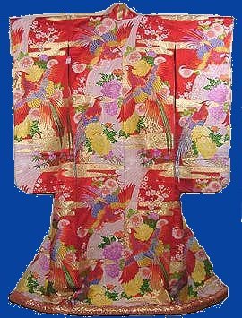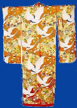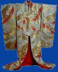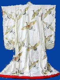 A variation on this is the Shiromuku which is a white bridal gown. The shiro stands for white, and the muku for pure. The basic idea was that the white indicated that the woman was sort of a blank canvas and that she was willing to learn the customs and ways of her husband's household and take them for herself.