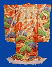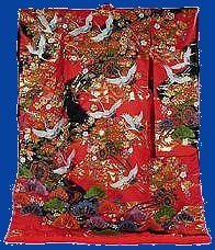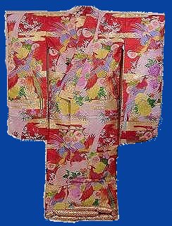 It is made of wadded silk and has long flowing sleeves. It also has a padded hem. The cost of these is usually very high and they are often rented rather than purchased outright. The renting of the Uchikake began to be popular in the 1960's.