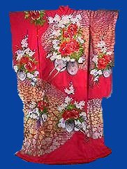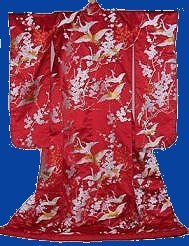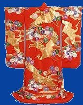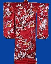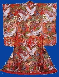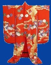 In my own personal opinion the Uchikake is the most beautiful of all the types of kimonos. Until the Edo period the Uchikake was a kimono worn by ladies of warrior or noble families on formal occasions. Later it became the Japanese bridal costume.