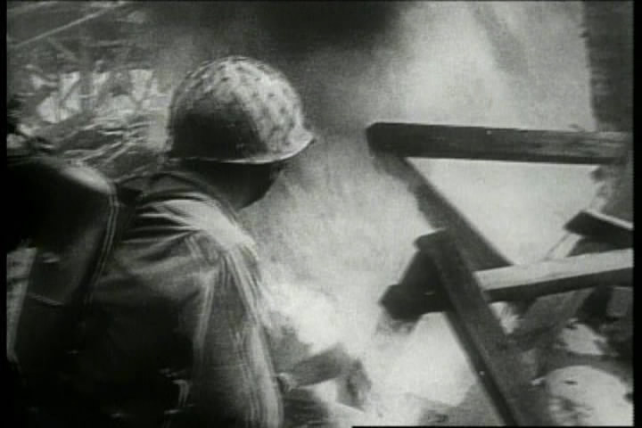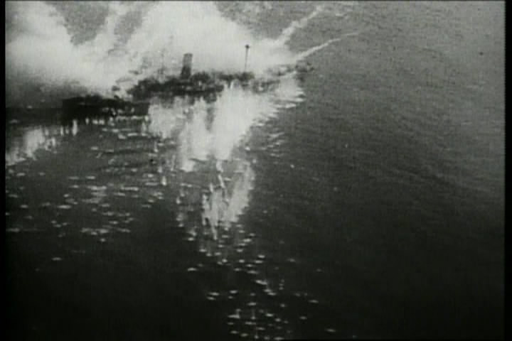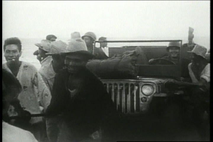 The Allies return. One series of shots shows ship after ship unloading men and materials which is indicative of one of the reasons Japan lost the war; it simply could not possibly out-produce the United States. The U.S. could produce more ships faster than could Japan; it could produce more supplies and get them to where they needed to be than could Japan. That this would happen was understood by Yamamoto and a small number of others, but their concerns were ignored by the military. The movie adds that there are over 7000 islands in the Philippines.