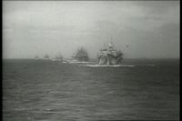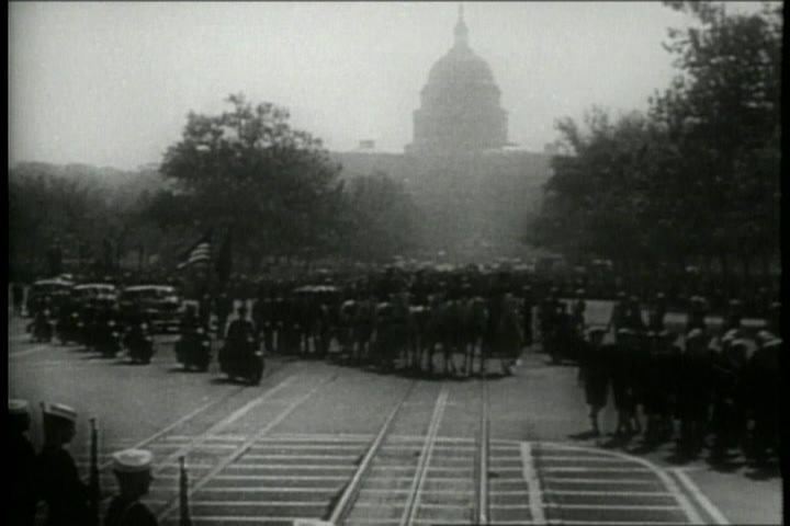 FDR's funeral procession. Meanwhile, at Okinawa, thirty ships are sunk and over two hundred damaged by the kamikaze. More than 3,500 kamikaze planes are destroyed. (Working that out in math, that means it took over 15 planes to either sink or damage a ship on the average.)