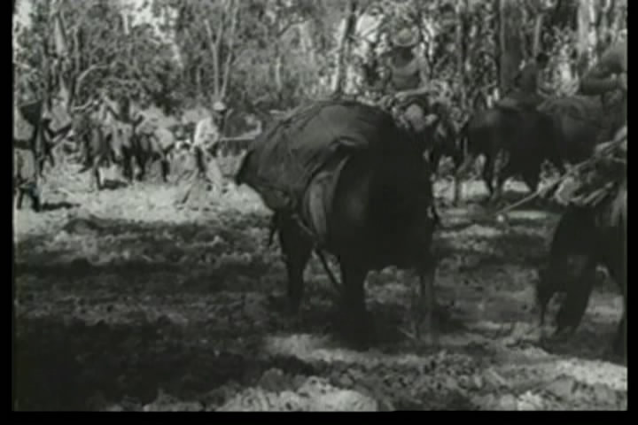 Animals are used for transport in the jungle. Six sections of 190 mules each are received.