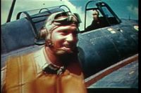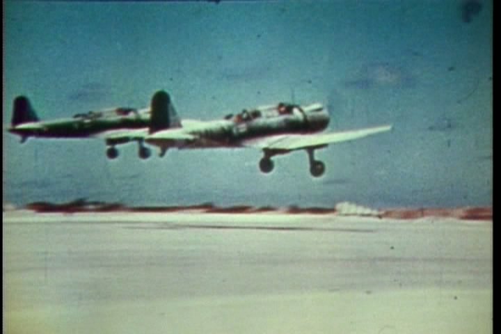 Then the video talks about rescue efforts for downed pilots. Background music, “Onward Christian Soldiers.”