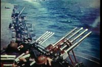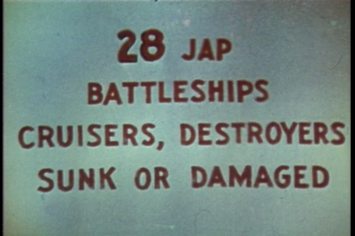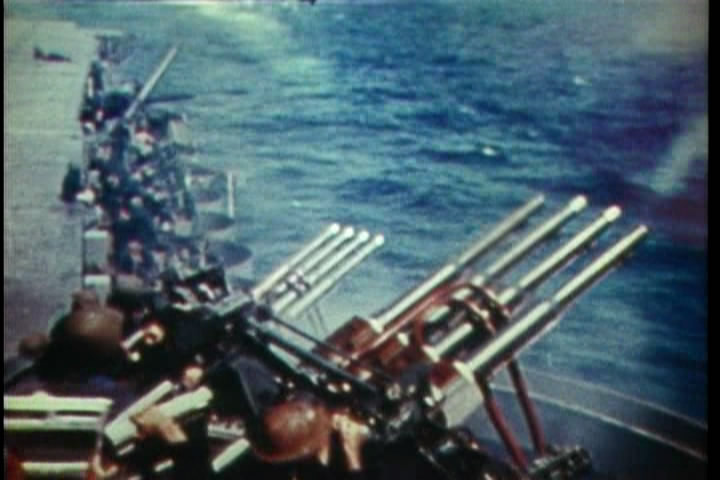 Then, in something which makes no sense whatever, the video shows US planes taking off, immediately followed by ships using their anti-aircraft fire, but with no mention of any Japanese planes attacking, so it looks like our own ships are shooting at our own planes that just took off. Didn't anybody bother to edit this film at all???