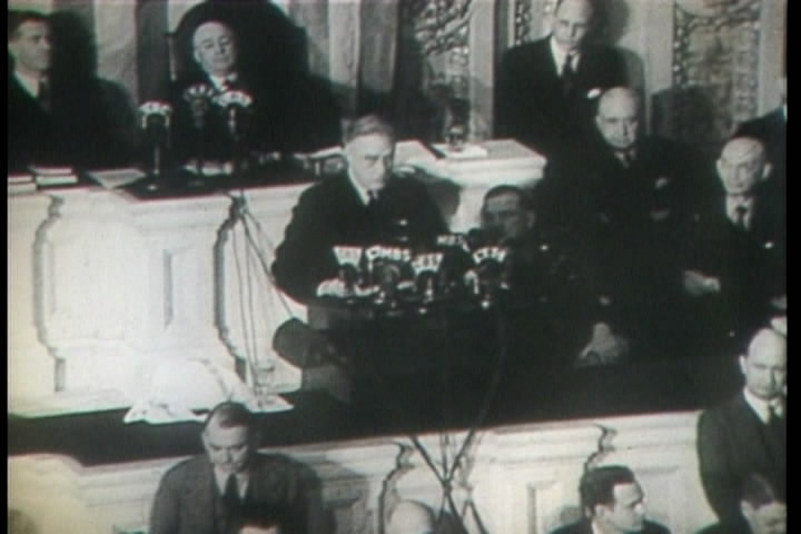 January, 1942; FDR talks about increasing production goals for the U.S. This is one speech of his I haven't seen on any other video.