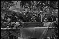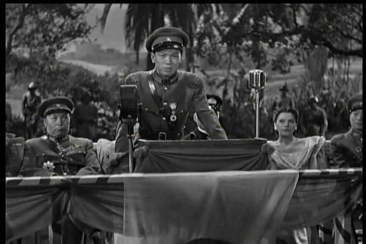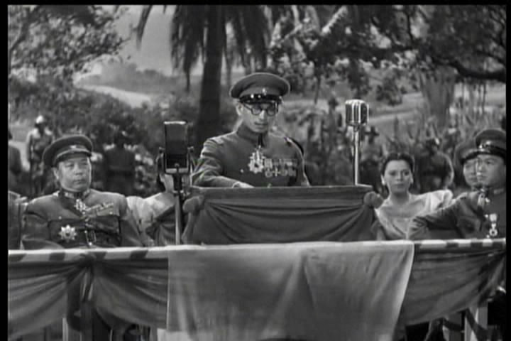 A woman making a pro-Japanese broadcast (but she's not Tokyo Rose.) The events are taking place before the Americans were driven out of the Philippines.