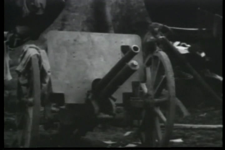 The video then talks about a British unit in Burma, and shows a destroyed Japanese artillery piece.