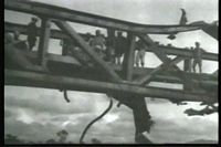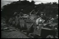 “The Allied campaign to drive the Japs from North Burma continues...” The image is very dark in this old film.