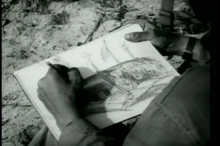 Sometimes combat artists were embedded with the troops. (Then a couple rather gruesome scenes of dead Japanese bodies follows.)