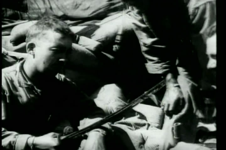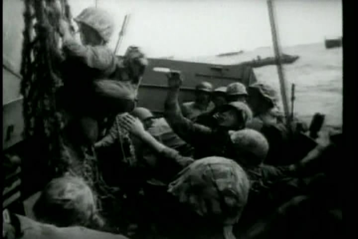 The video starts out by noting how the battle for Tarawa gave people an idea just how harsh the fighting against Japan would be.