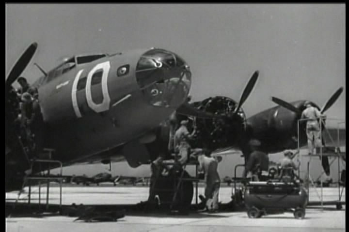 They land at Clark Field shortly after it had been attacked by the Japanese. They take off again fairly soon but the plane gets shot down and the crew has to abandon it. One guy manages to land the plane. It's due to be destroyed as wreckage, but the crew fixes it up.