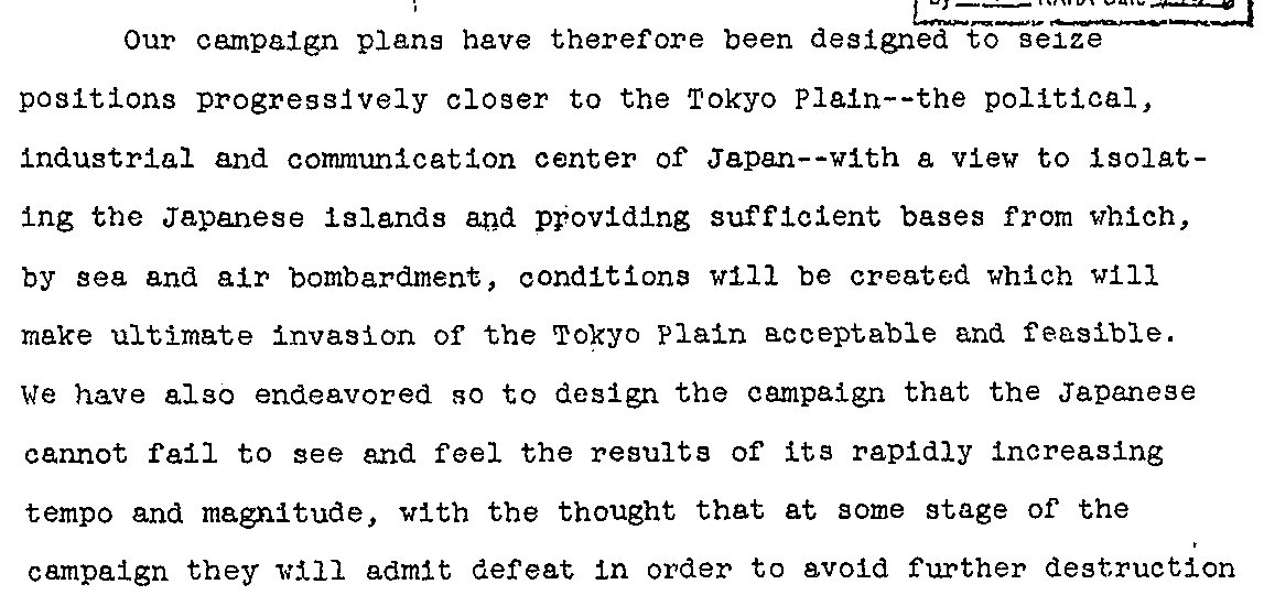 After Okinawa, Kyushu would be attacked, and the Tokyo Plain after that.