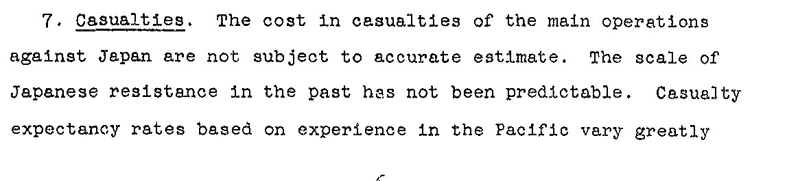 This portion of the document says that the casualties cannot be accurately estimated, this even though other documents set specific numbers of possible casualties. There simply was no way to be absolutely sure. No one knew just how bad the kamikaze attack would be (probably worse than expected since they had more planes left than the U.S. thought they had), and there was no way to tell how many civilians would take up arms against the U.S. forces.