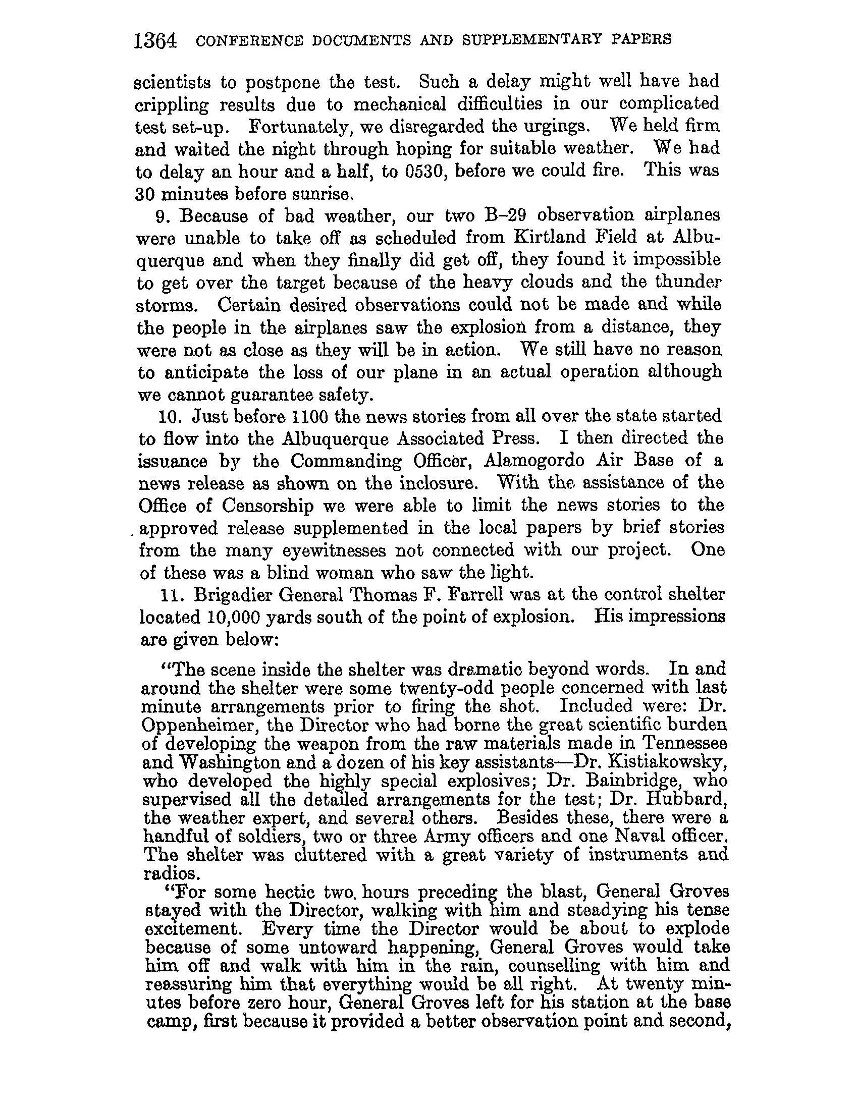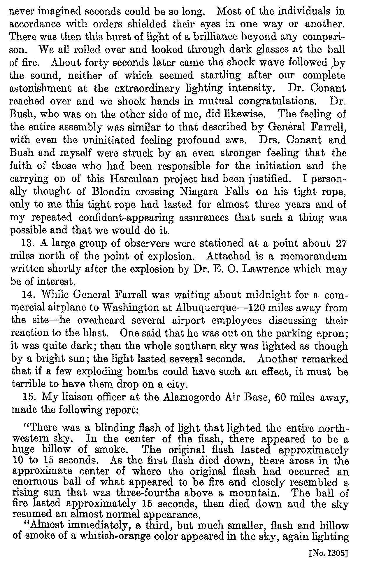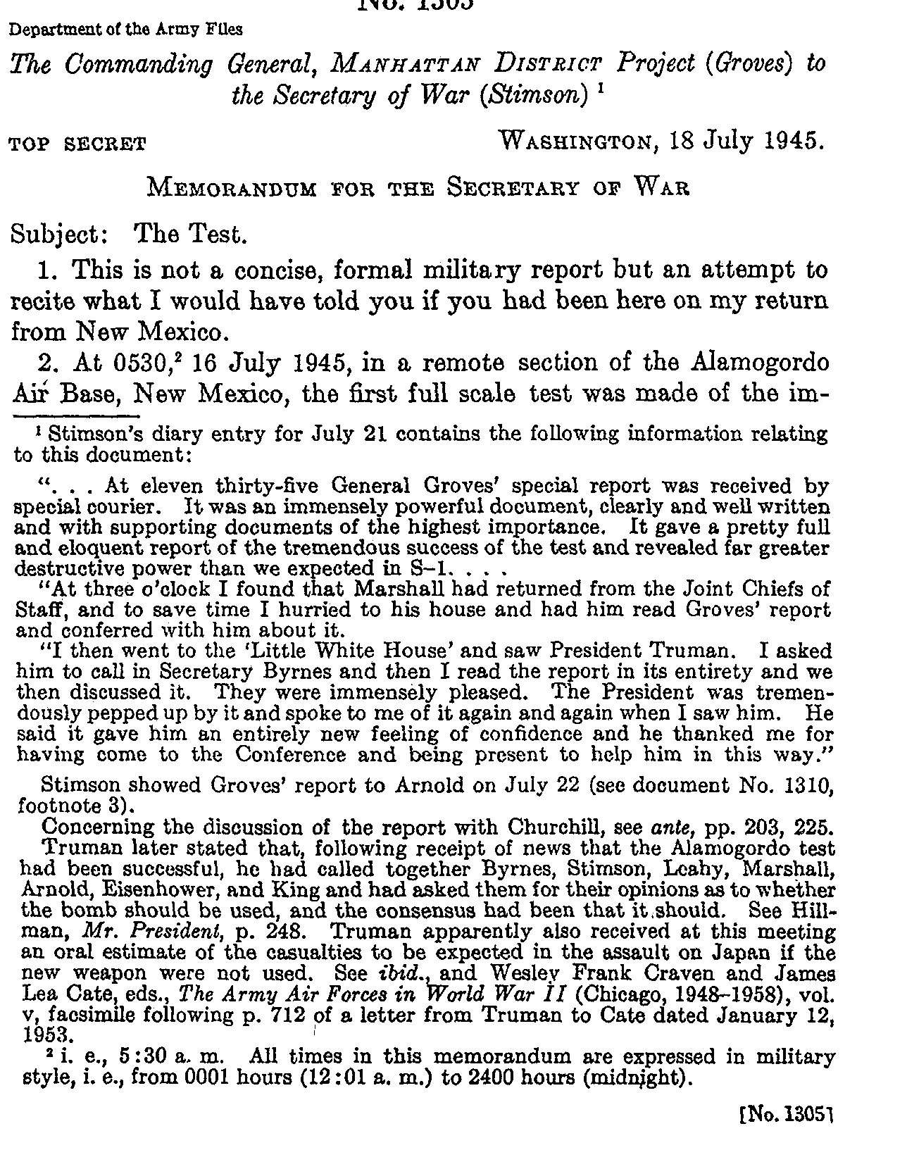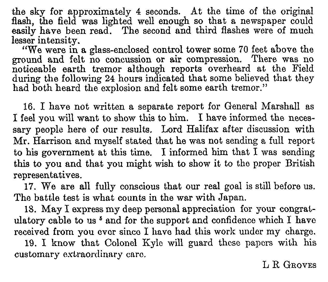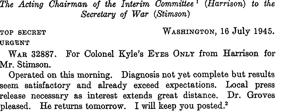 Coded message (of a sort) noting that the atomic bomb test went off as planned.