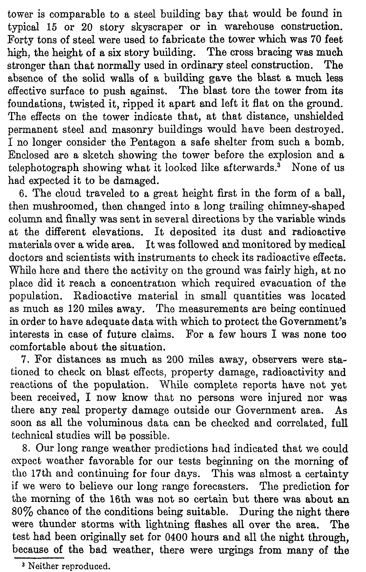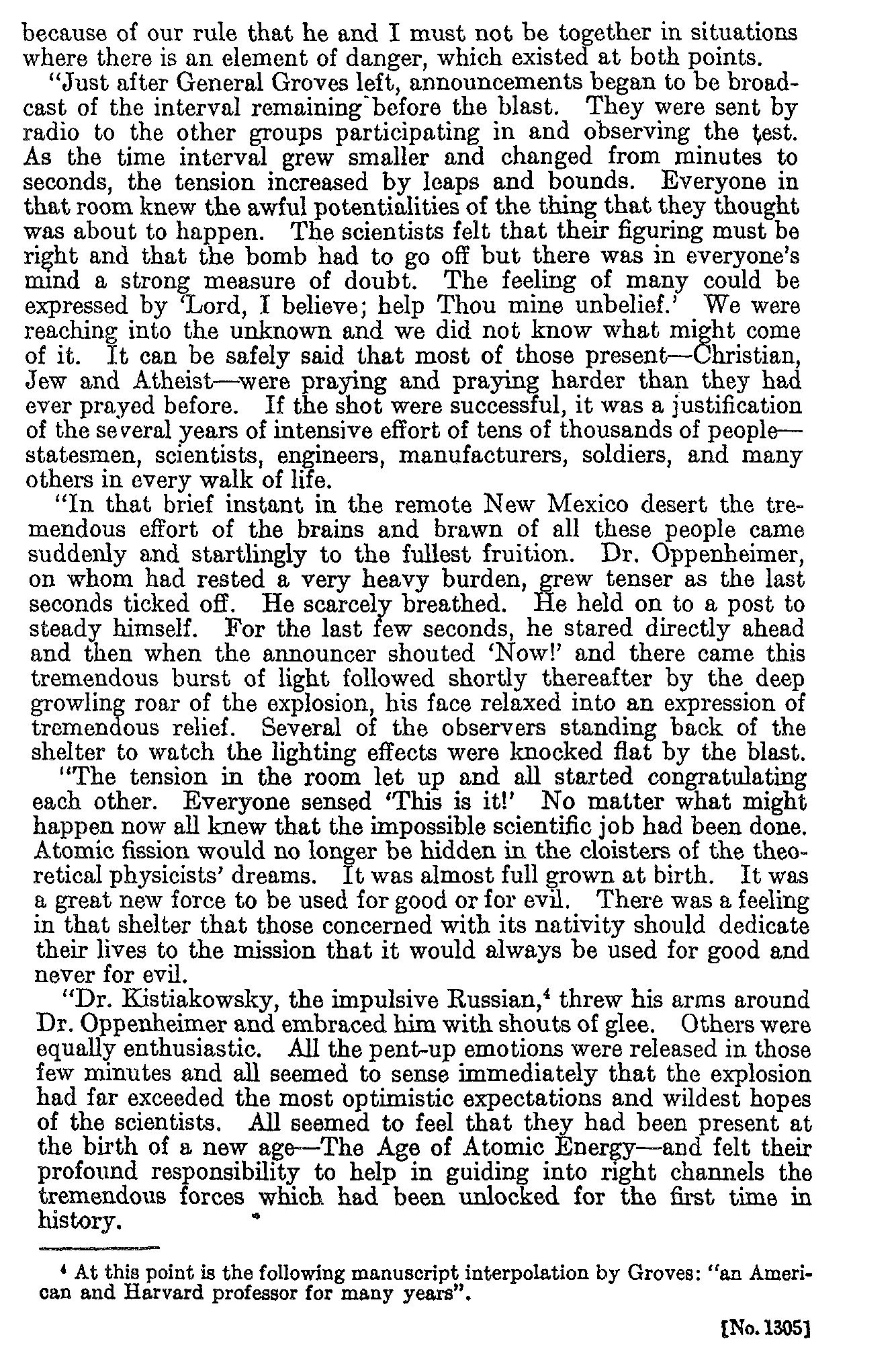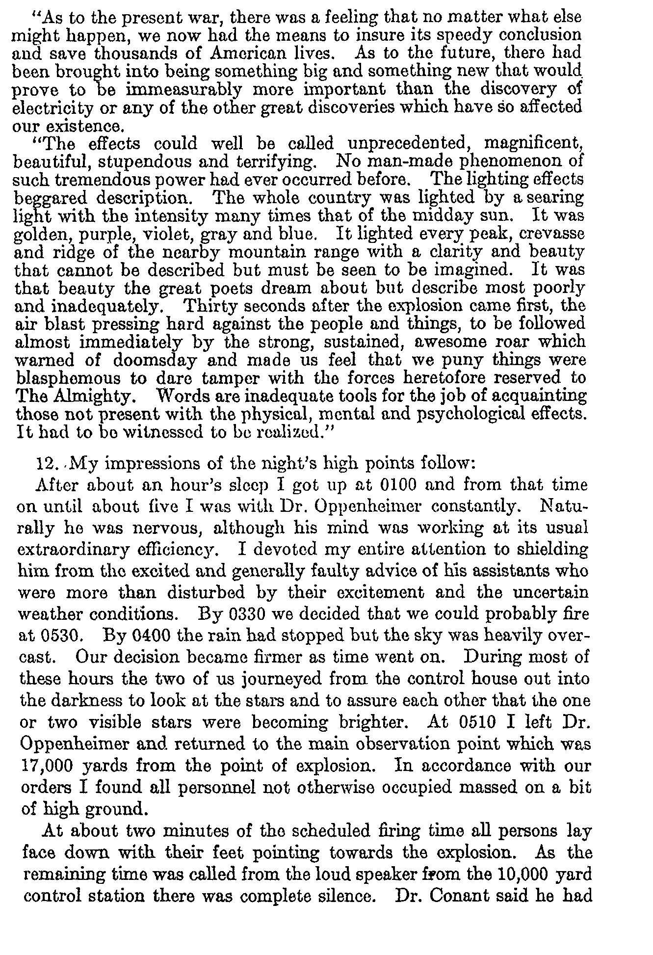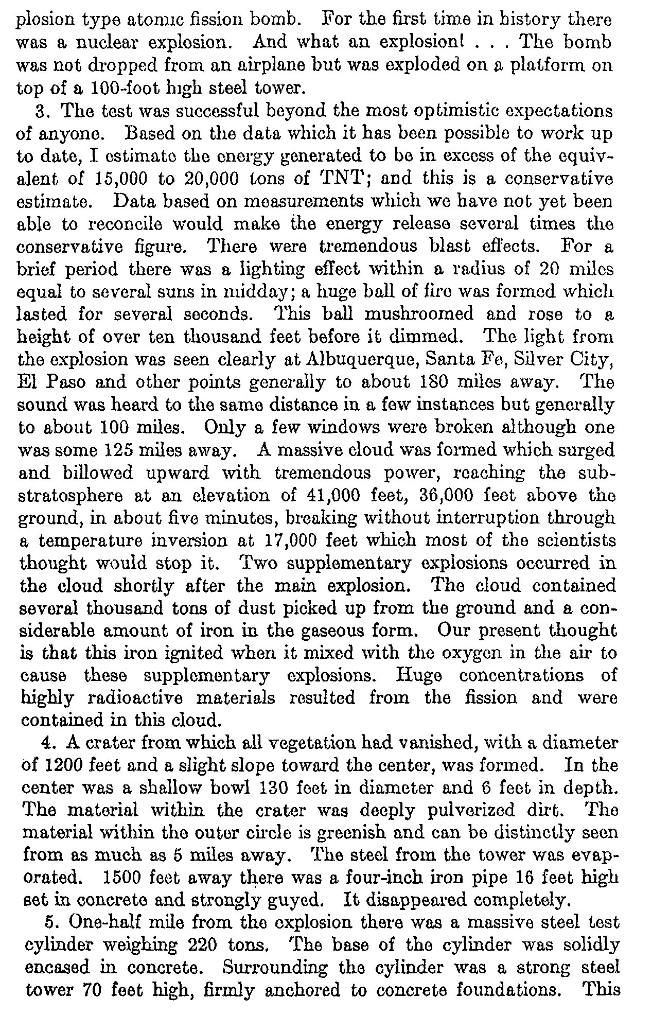 Coded message (of a sort) noting that the atomic bomb test went off as planned.