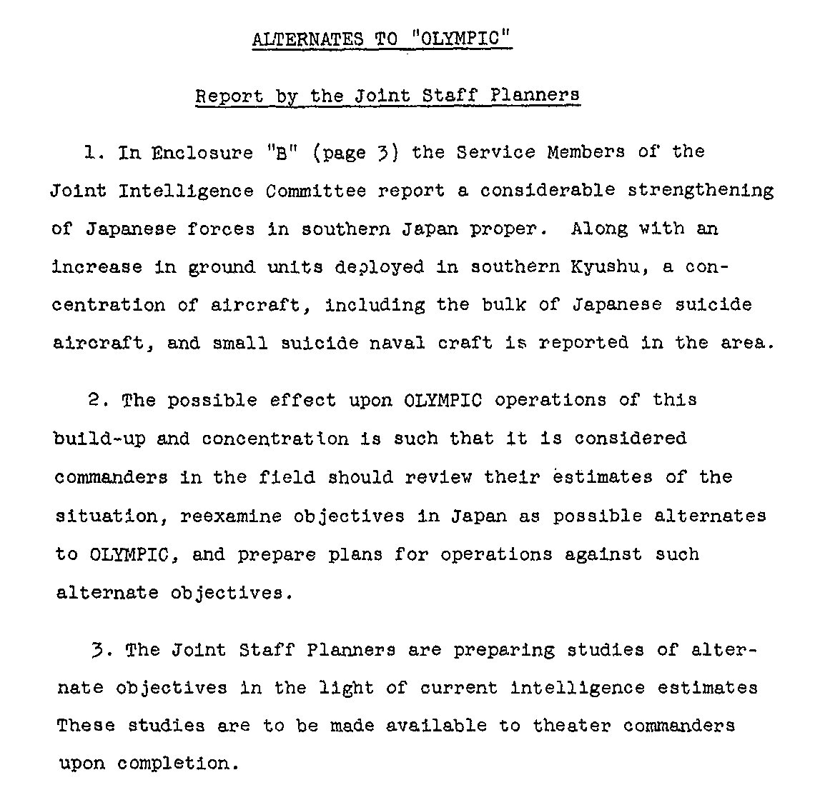 Alternatives to OLYMPIC. JWPC 397, 4 August 1945.