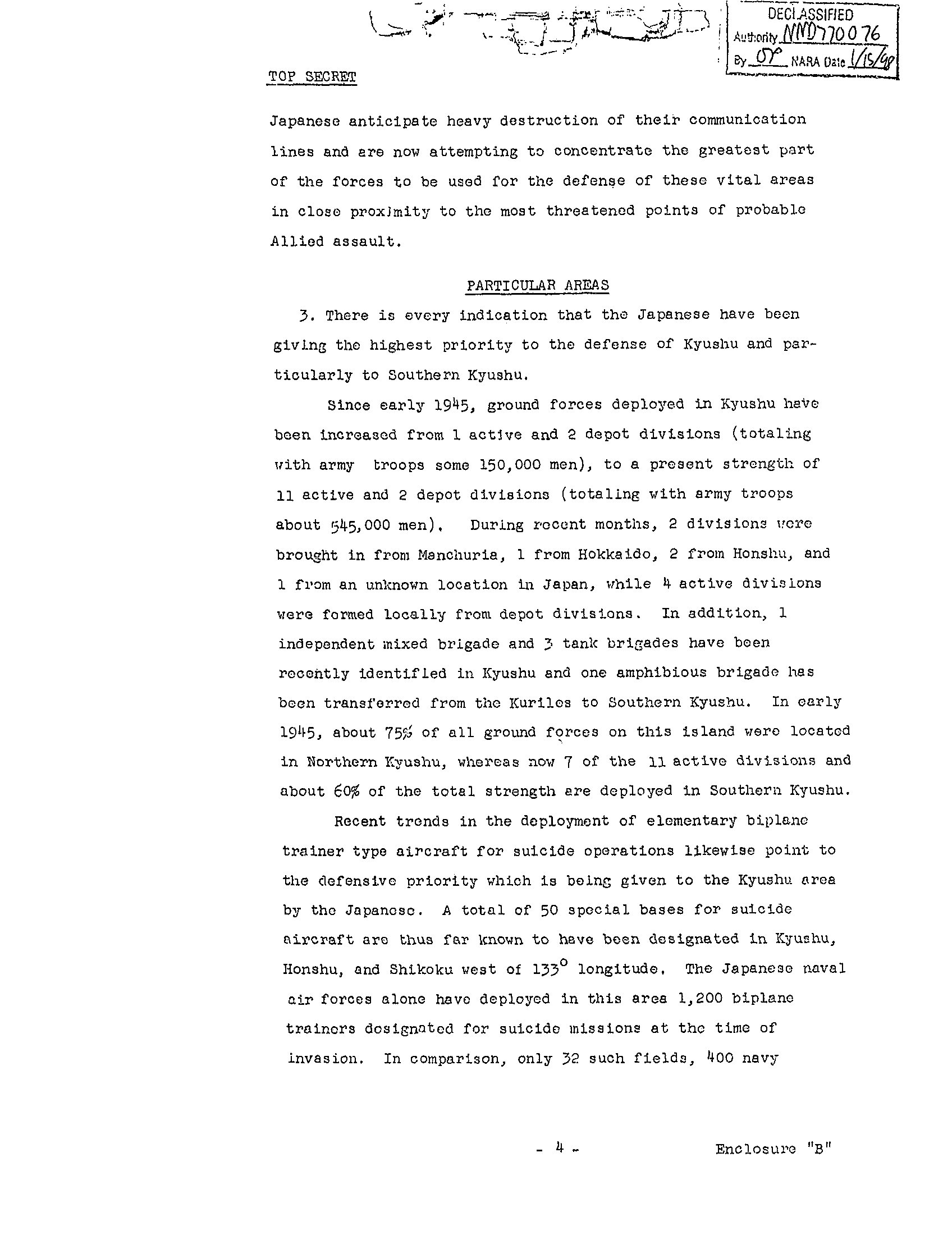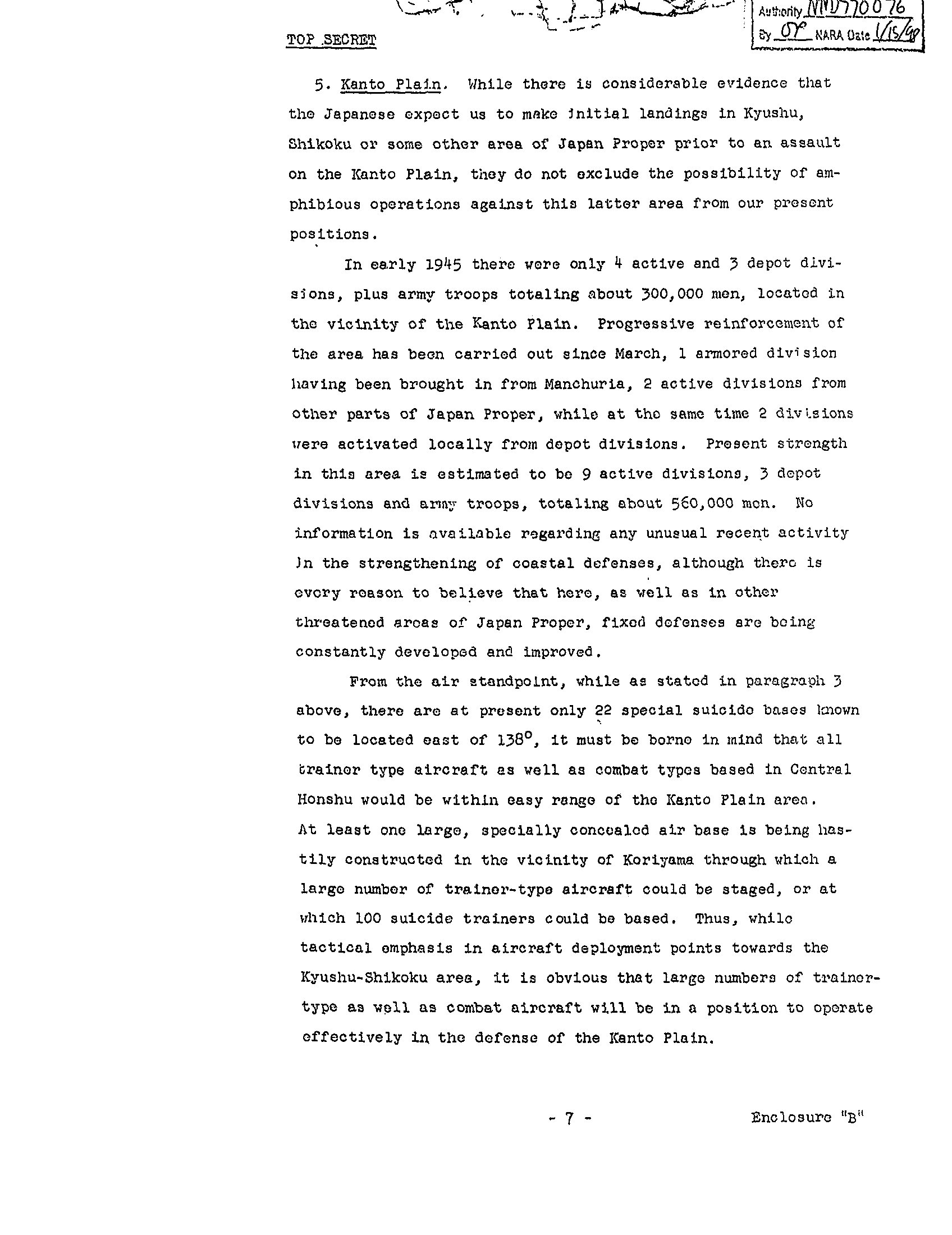 This part of the document alludes to their being more ground forces and more planes in Kyushu then originally thought. The end result is that there is a suggestion that alternatives to the invasion be considered.