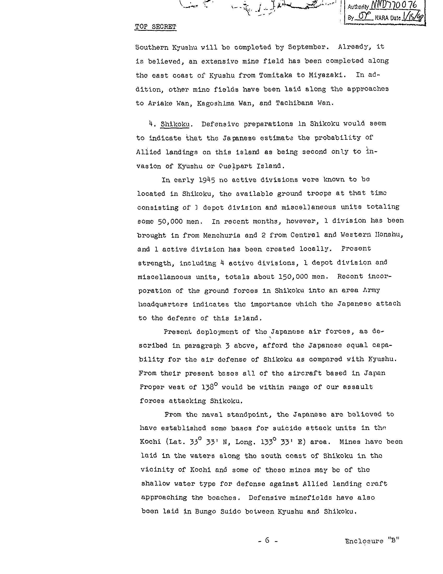 Japanese defensive activities in Shikoku.