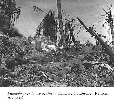Using a flamethrower against the Japanese