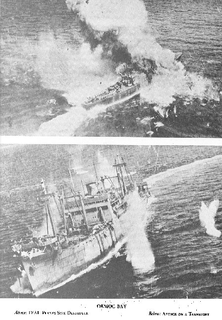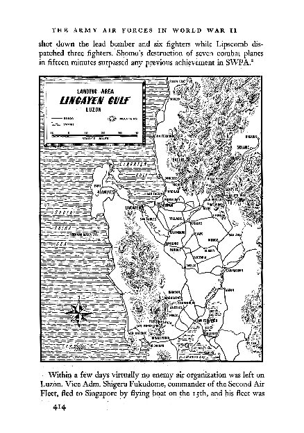 over Leyte between 27 October and 3 I December; of this number, V Fighter Command pilots shot down 314 and probably destroyed 45, losing only 16 of their own planes in aerial combat. By 25 December Marine fighter pilots had destroyed forty-two enemy aircraft and probably destroyed two, at a cost of seven F4U’s. Sixth Army AA units claimed 250 definites and I 10 probables between 2 0 October and 2 5 December.”