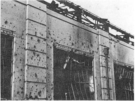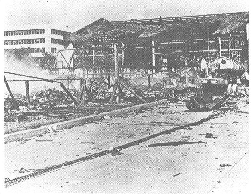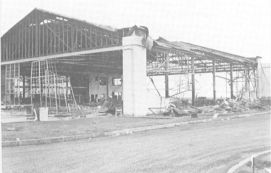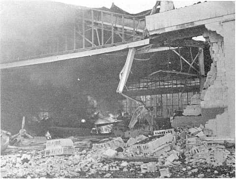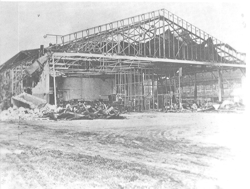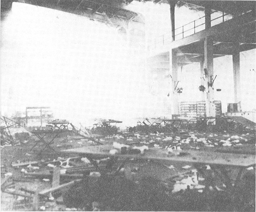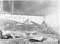 When the flames died down and the smoke cleared, all that remained was the skeleton of Hanger 3. Below, total devastation in Hanger 3.