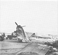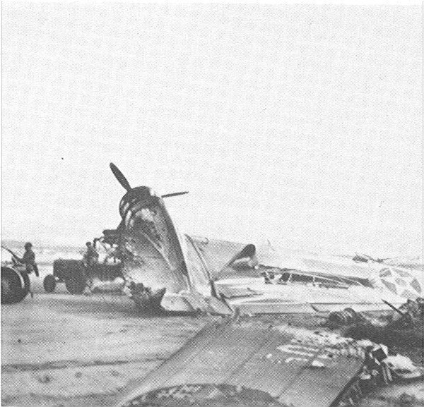 Above, all that remained of the lineup of p- 40s on the Wheeler flight line.