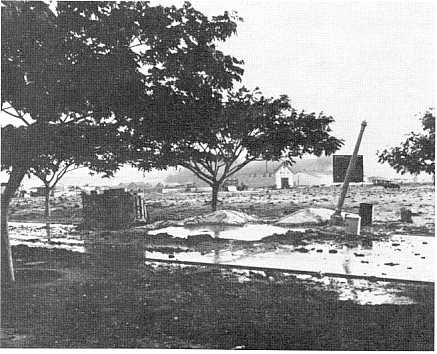 Many enlisted members of the 72d Pursuit Squadron were killed or seriously injured in these tent quarters along Wheeler's hangar line.