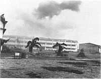 The first bombs to strike Hickam Field were dropped on Hawaiian Air Depot buildings and