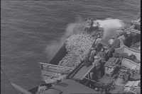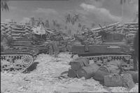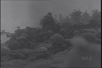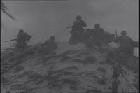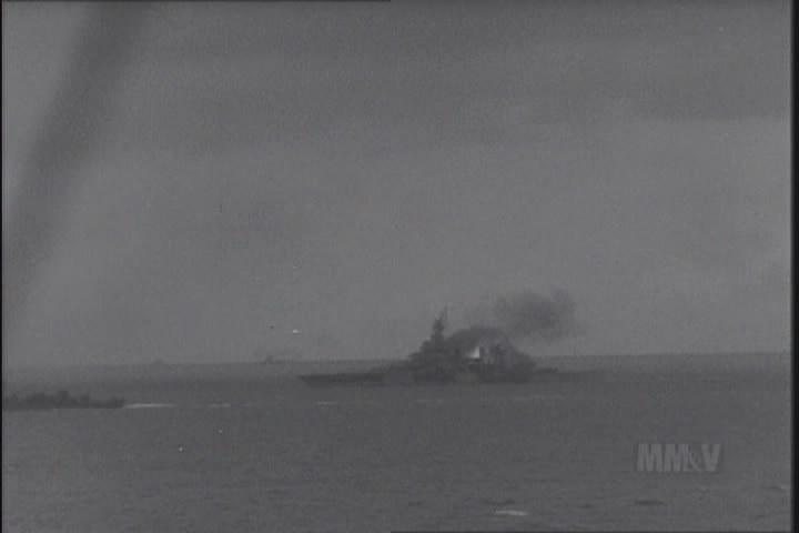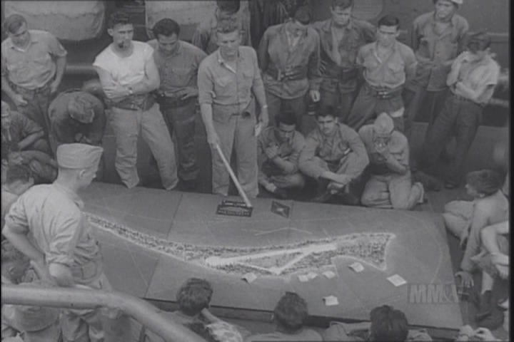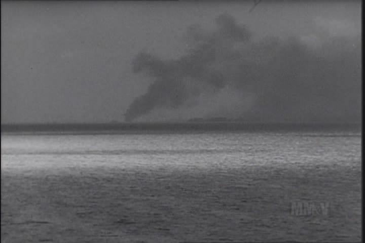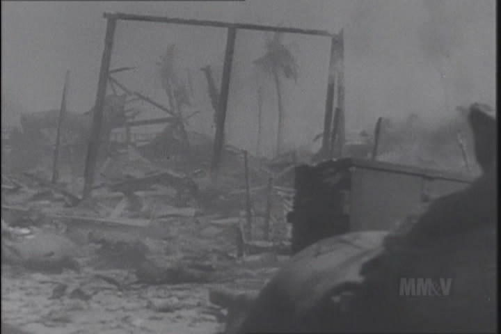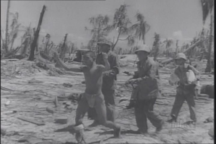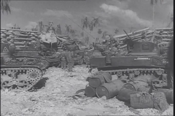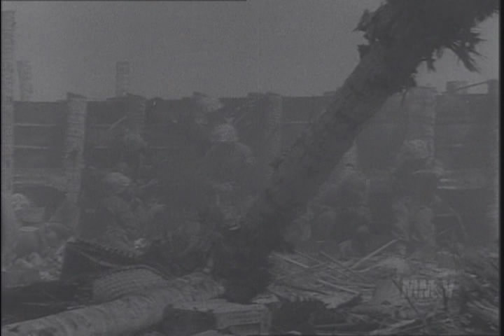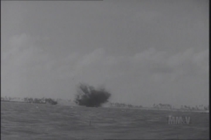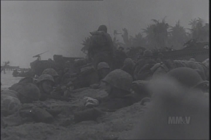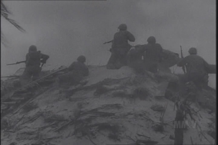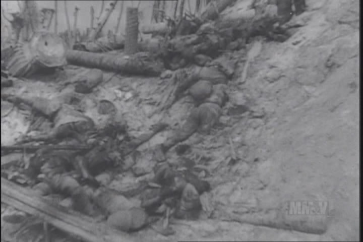 Scenes of the actual attack. There's one particularly gruesome scene where where Japanese soldier (who is probably already dead) is machine-gunned while lying flat on his back.