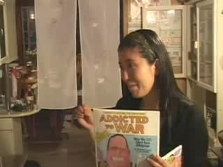 She talks about how the U.S. economy lives on wars. She says that, instead of spending money on war, we should be spending money on peaceful purposes.