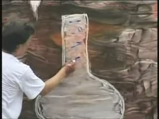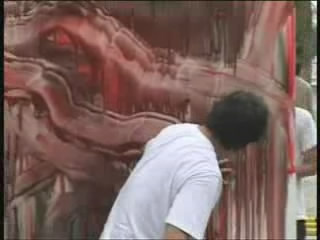 The guy continues to put things on the canvas then wipe them off, and the other guy keeps playing the annoying music (I actually turned the sound way, way down at this point.)