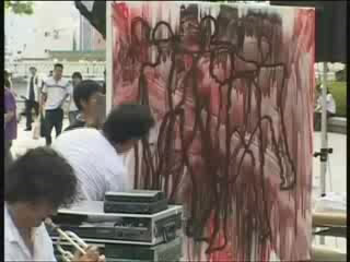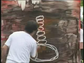 A guy doing some kind of unusual painting near the domed building. Again, no narration. There is, though, some incredibly, (very incredibly) annoying sounds going on which are trying to pass themselves off as music.
