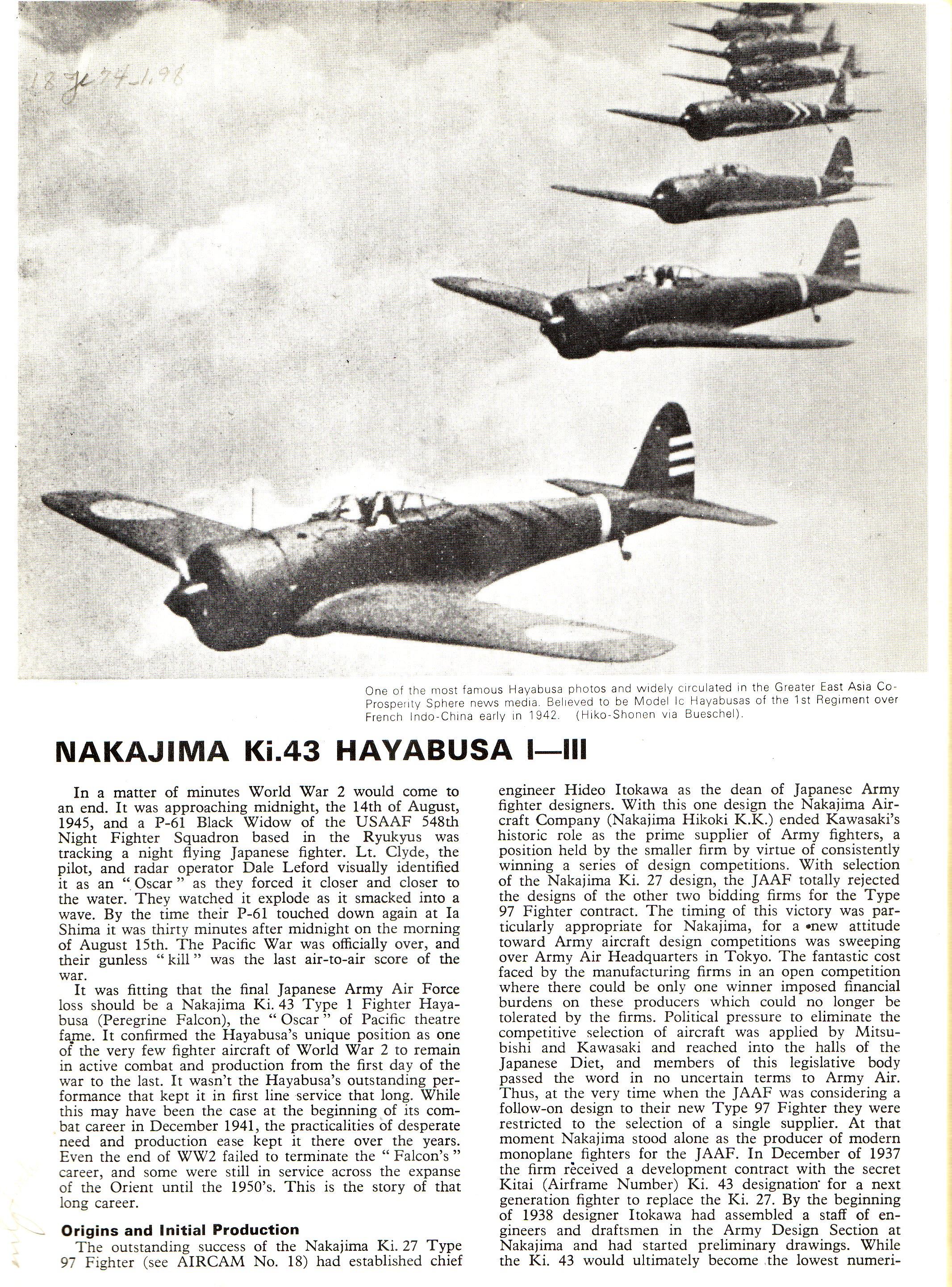 This is a book of information on one of the Japanese planes in its various versions. It includes loads of photos of the planes, both on the ground and in the area; eight pages of color illustrations; a page on Japanese Army Air Force insignias, pages of information on where he planes were used, and lots of other information on top of all of that.