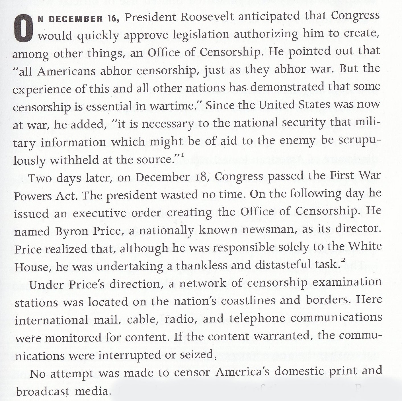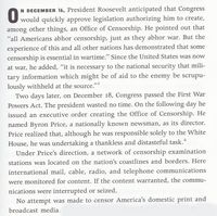 This relates to the establishment of an Office of Censorship.