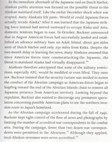 The author goes on to talk about how the Japanese media portrayed the “brave defenders” of Attu, and how Japan might be invaded by the U.S. launching forces from the Aleutian Islands. Such a thing was almost, although not totally, impossible due to the weather conditions in the area which would have made a major invasion, by either side, an incredibly difficult, nearly impossible thing to carry out successfully.