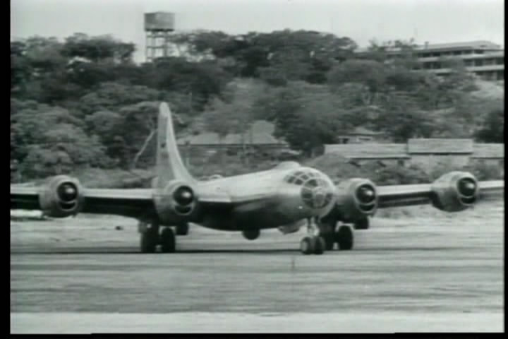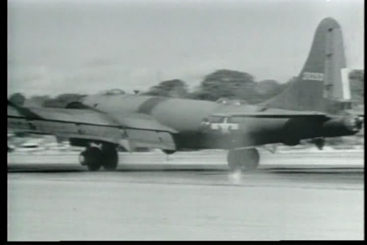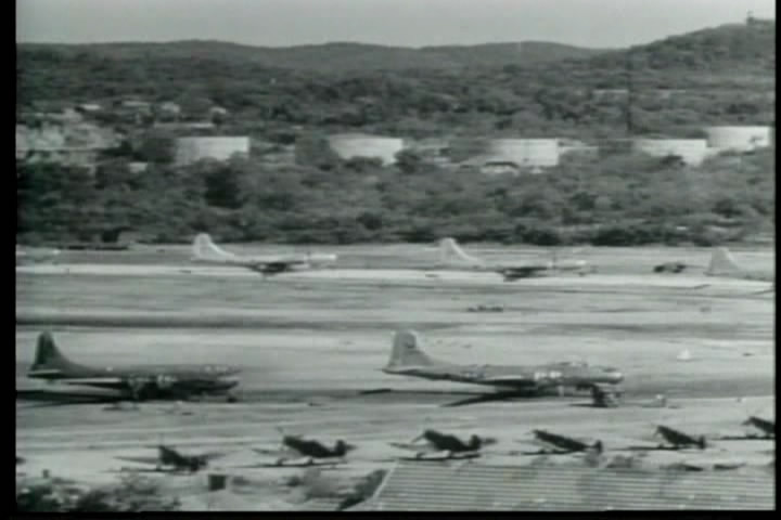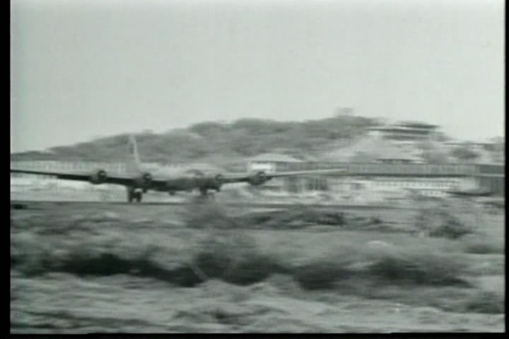 “The plane has proved its effectiveness as a long-range offensive weapon.” That's what the film claims. Actually, it hadn't. These early, long-range, high-altitude attacks were generally rather unsuccessful. The B-29 didn't really come into its own until Curtis LeMay changed the tactics to low-level, nighttime, incendiary bombing attacks.