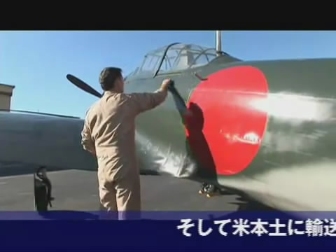 The pilot explains at the end that the plane is in an air museum in Chino, California, and that it's an original Zero, the only one left actually flying. It has almost all original parts except for using U.S. sparkplugs, and modifying the gear retraction system a little.