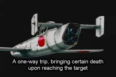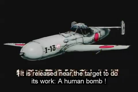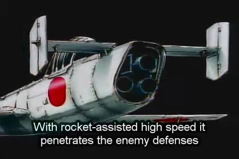 This is a Japanese anime about a young man who is going to be flying a baka bomb, a rocket-propelled craft launched from a propeller-driven airplane. It could go around 500 miles per hour, making it very hard to shoot down. Theoretically, it would prove massively destructive against ships since it carried an explosive in its nose; it was a form of kamikaze craft.