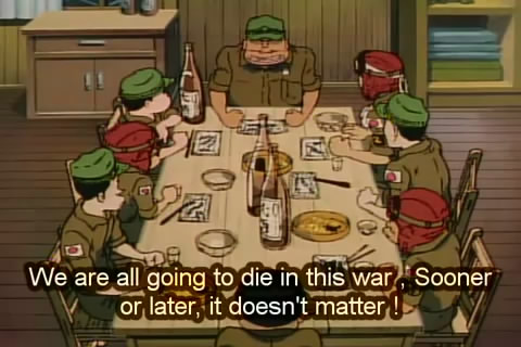 The irony in this anime is that the young man makes his flight on the very day that Hiroshima was bombed.