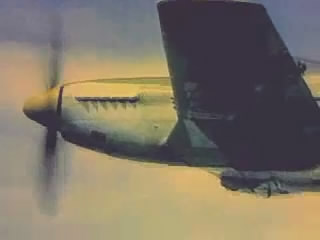 The first half of the clip deals with air-to-air combat involving the P-51, and the second half shows the plane used on strafing runs against transportation, boats, buildings, power lines, etc.