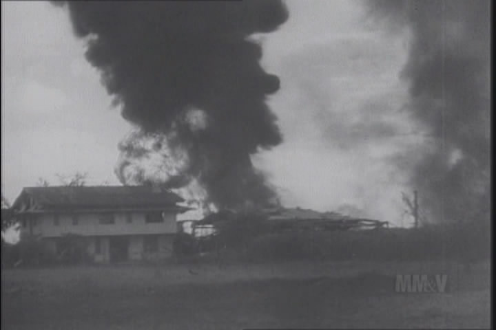 Japanese planes attacked Manila on the same day. There are some scenes showing bodies of natives that had been strafed by the Japanese planes.