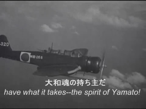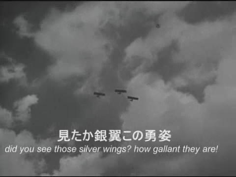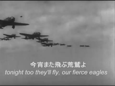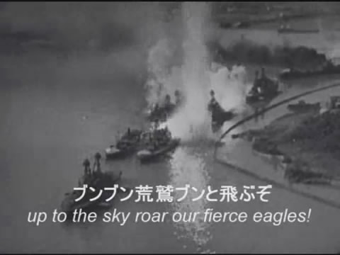I think it's good that people take the time to take these old songs and subtitle them and put them up where they can be seen so they're not lost. This is obviously a militaristic, propagandistic song. I think some of the scenes near the end are a re-creation of the attack on Pearl Harbor, and some bombing scenes earlier might be in China but I'm not sure. Either way, this is an important type of thing that could be easily overlooked but shouldn't be.