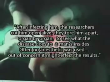 Many of the images used in the two clips are simply too gross to post here. The comments below the pictures are what the video says, except for the comments in parentheses, which are my take on what is being said.