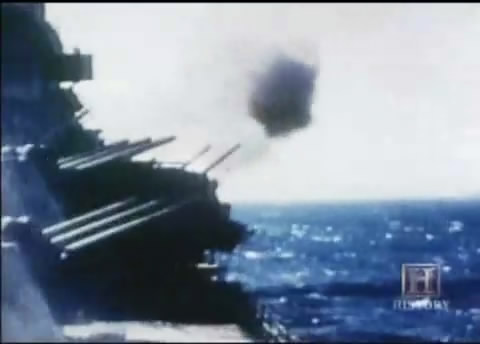 Phase 1 of the fight: battleships launch a pre-invasion bombardment.